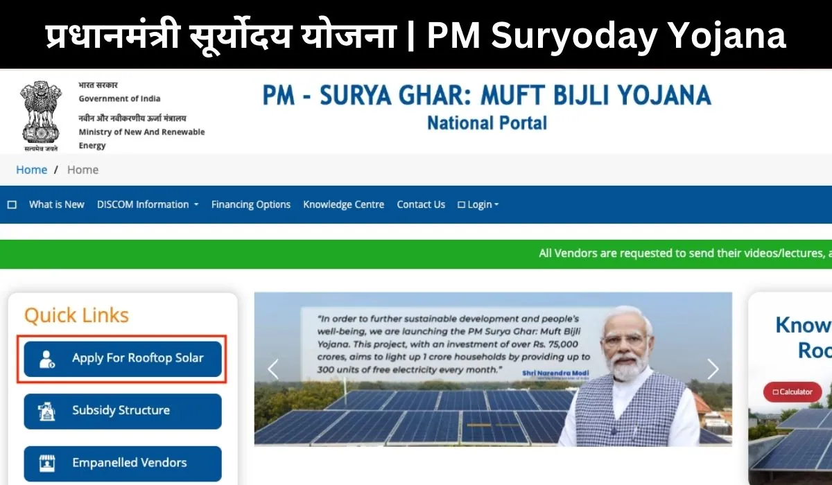 PM Suryoday Yojana 2024 – प्रधानमंत्री सूर्योदय योजना | Online Apply, Benefits, Eligibility & Registration, Subsidy, Yojana Details